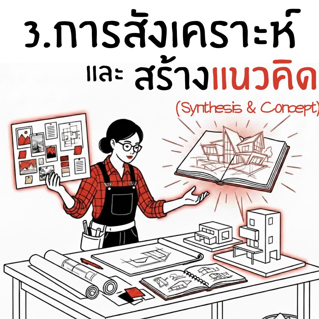 Infographic ที่จัดทำขึ้นนี้สะท้อนภาพรวมของกระบวนการออกแบบ ตั้งแต่ขั้นตอนการทำความเข้าใจโจทย์ การวิเคราะห์บริบท ผู้ใช้งาน และพื้นที่ ไปจนถึงการพัฒนาแนวคิดและถ่ายทอดออกมาเป็นงานสถาปัตยกรรมอย่างมีลำดับขั้นตอน ชัดเจน และสามารถอธิบายได้อย่างเป็นเหตุเป็นผล
