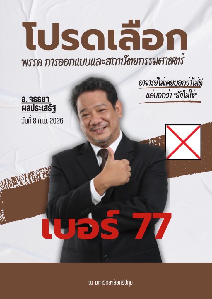 ในวันที่ทุกเสียงมีความหมาย ✨ เราขอชวนมองการเลือกตั้งผ่านมุมมองของนักออกแบบ ที่เชื่อในกระบวนการคิดอย่างมีระบบ และการออกแบบที่ตอบโจทย์สังคมอย่างยั่งยืน 8 กุมภาพันธ์นี้ พรรคการออกแบบและสถาปัตยกรรมศาสตร์ มหาวิทยาลัยศรีปทุม พร้อมออกแบบอนาคตไปด้วยกัน..