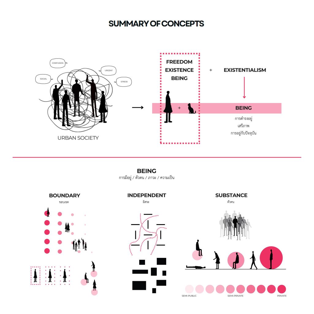 โครงการ “อัตถิภาวสถาน คนกับแมว” จึงเป็นข้อเสนอเชิงพื้นที่ที่มุ่งสร้างความสมดุลระหว่างชีวิตเมือง ความเป็นส่วนตัว และความสัมพันธ์ระหว่างมนุษย์กับสัตว์เลี้ยง เพื่อให้การอยู่อาศัยร่วมกันเกิดขึ้นอย่างมีความหมายและยั่งยืน.